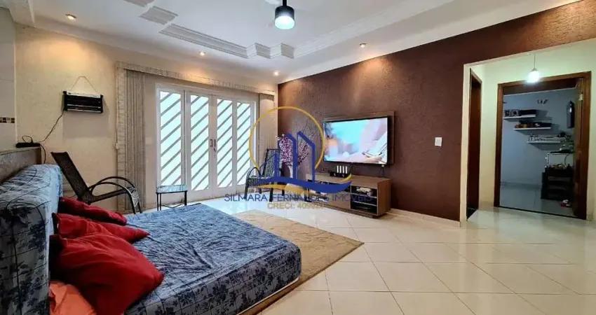 3 dormitórios com ventiladores de teto, sendo 1 suíte com armários, bancada, pia sobreposta, box blindex, chuveiro e ar condicionado