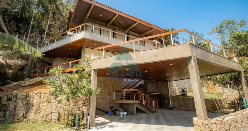 CÓDIGO 435 - Bela casa em condomínio fechado de alto padrão no Canto das Toninhas com uma vista exuberante e privilegiada para o mar. Composto por 4 dormitórios, sendo 3 suítes, 2 banheiro social, sala ampla 4 ambientes , 2 lavabo, varanda, sacada, área de serviço, churrasqueira e garagem para 10 carros. Condomínio seguro com vigilância 24 horas.