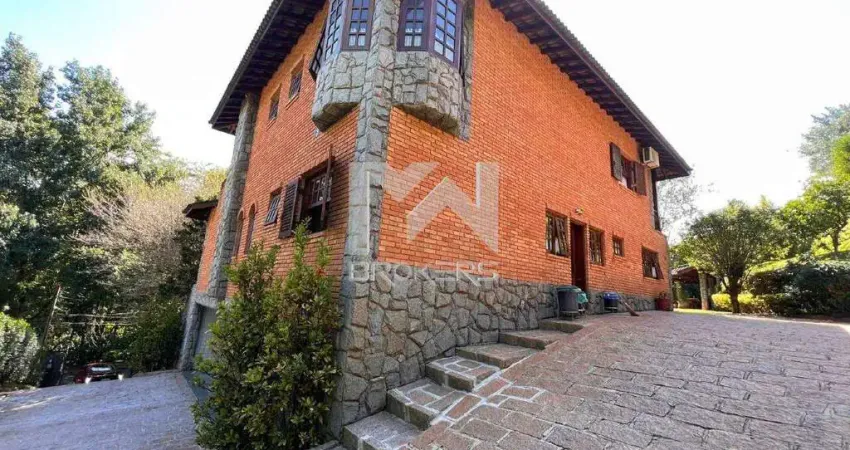A diversão continua no exterior, com uma incrível área gourmet equipada com churrasqueira, fogão à lenha e forno de pizza. Desfrute de momentos relaxantes na piscina, enquanto admira o quintal arborizado. Além disso, a casa ainda possui uma edícula com dois dormitórios, banheiro, depósito e banheiro de serviço.