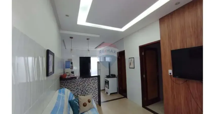 casa da frente recém reformada, com piso, toda forrada, sala conjugada a cozinha, 2 quartos, 1 banheiro todo reformado e quintal com área de serviço.