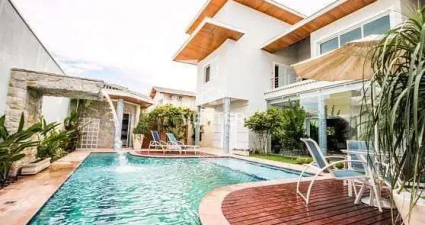 Belíssimo sobrado em condomínio. São 04 suítes, sendo 01 com banheira e todas com closet, 04 salas, escritório, sala com lareira elétrica, Móveis planejados, todos os cômodos com ar-condicionado, piscina com aquecedor e iluminação. Sauna a vapor, espaço gourmet completo, espaço de jogos e ginástica. Acabamento de luxo, com pedras e porcelanatos. - PONTOS FORTES: Imóvel de alto padrão.Projeto (link removido) proposta com imóvel de menor valor como parte de pagamento.
