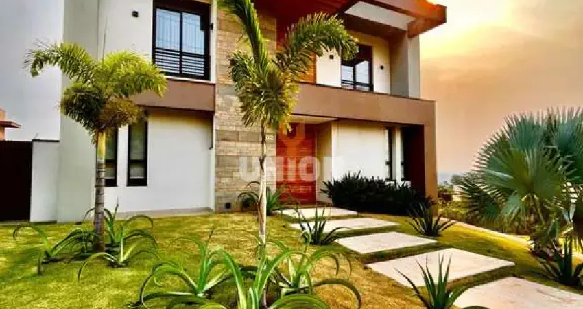 A lareira é a gás, adega e a vista para o pôr do sol são detalhes que tornam essa casa ainda mais especial, proporcionando momentos de relaxamento e tranquilidade.