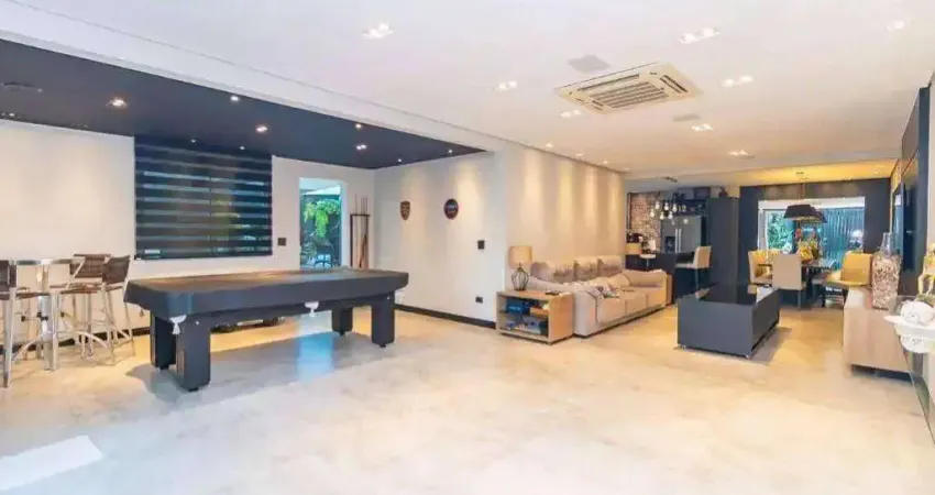 Na área externa, o quintal com paisagismo proporciona um clima leve e acolhedor. A piscina aquecida com deck em madeira é perfeita para uso em qualquer época do ano. O espaço gourmet com churrasqueira é integrado ao jardim e à piscina, ideal para momentos de convívio. A edícula foi reformada e abriga uma sala de jogos, estar social e mais um ambiente versátil para receber.