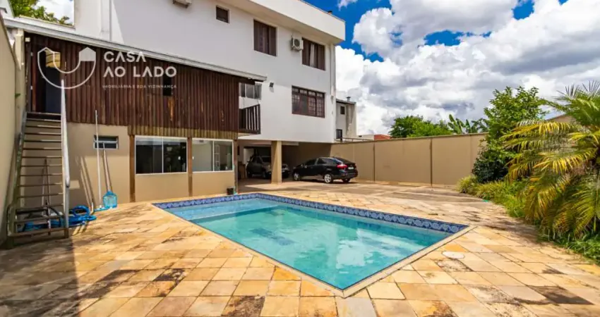 O imóvel dispõe de Sala para três ambientes com lareira, Cozinha ampla com pia e armários planejados, Sala de estar íntima com lareira, Escritório com armário. 1° andar: Cinco quartos sendo três suítes com banheira e um com sacada ampla, Sala de estar, Banheiro social. Área externa:Edícula ampla com portas de vidro, Churrasqueira a carvão com armários balcão e pia, Piscina, Área de serviço individualizada, Despensa