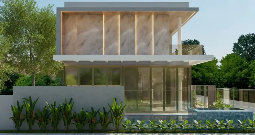 Viva o privilégio de acordar com o som das ondas: sobrado de alto padrão, com piscina, a aproximadamente 30 metros do mar.
