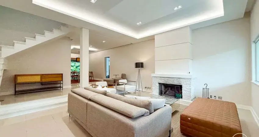 No segundo andar, encontram-se uma suíte master com varanda privativa, mais uma suíte e um salão amplo que pode ser adaptado como sala íntima, home theater ou espaço de convivência, além de rouparia ou closet adicional.