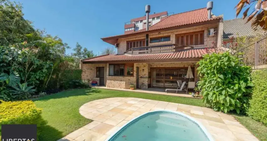 Casa com 5 dormitórios, 2 suítes, 5 banheiros, pátio com piscina e (link removido) com 5 dormitórios, sendo 2 suítes master, 1 com banheira de hidromassagem, lavabo, banheiro social e banheiro de serviço, totalizando 5 banheiros. Todos os banheiros com ótima ventilação. 3 salas amplas e bem distribuídas, 1 delas com lareira. Cozinha ampla e funcional com bancada para refeições rápidas. Área de serviço uma lavanderia.Pátio amplo e privativo com piscina e churrasqueira. Dispõe também de 1 sótão espaç(link removido)ção solar leste garante luminosidade natural em todos os cômodos.2 vagas de (link removido) todos os móveis (link removido) localização próximo á mercados, farmácias, escolas e a 10 minutos do shopping Iguatemi. Estudamos seu imóvel no negócio. Além deste, mais de 25 mil opções em nosso site.