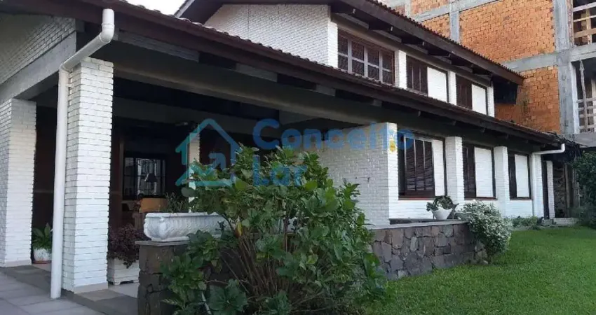 A casa conta com 5 dormitórios, sendo um suíte, 4 banheiros, sala de estar com lareira, jantar e cozinha, área de serviço, varanda, garagem com espaço gourmet e churrasqueira.