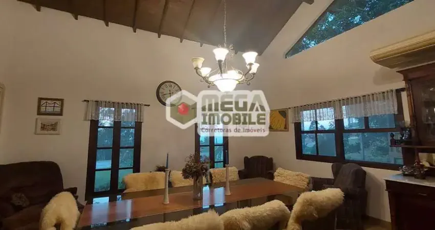 Casa térrea, 5 dormitorios, sendo 3 suítes, hall de entrada que divide a area social da área íntima, uma ampla sala de jantar com pé direito alto, muita iluminação natural, integrada à cozinha estilo colonial, clima bem de fazenda! Cozinha com fogão de lenha na ilha e saída para o terraço da parte dos fundos. Sala de tv na área íntima com lareira e muito aconchego. Realmente uma casa feita para a família e para descansar a mente e corpo.