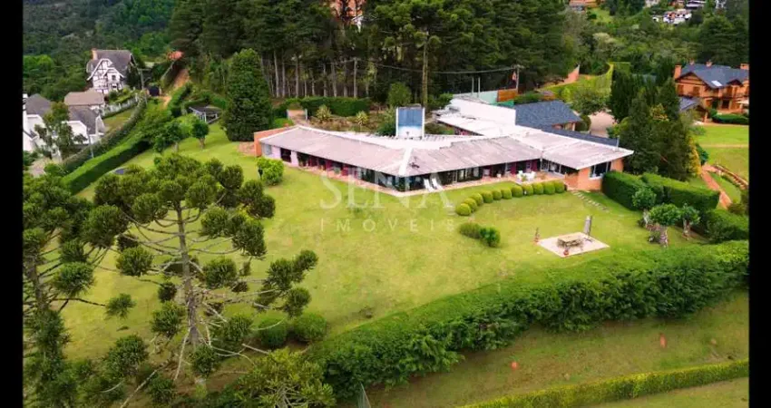 Magnífica casa térrea, indevassável, com projeto arrojado dos renomados e premiados arquitetos paulistas Percival Lafer e Aron Cohen privilegiando a vista deslumbrante, recém reformada, ambientes amplos, claros, arejados, sol da manhã e da tarde, 5 dormitórios divididos em duas alas com a área social no centro, todos com incrível vista, sendo 3 suítes, uma master com amplo closet com bancada, banheiro grande com banheira de hidromassagem e vista espetacular, mais 2 banheiros em frente aos 2 dormitórios, sala grande com vistão de 180° em varios ambientes com lareira, cozinha gourmet com ilha para 6 pessoas confortavelmente sentadas, muito bem equipada, integrada a sala com grande espelho refletindo a deslumbrante vista e com acesso a reservada cozinha principal com ótimos armários, despensa, lavabo, ampla sala de lazer e home theater com lareira, spa, sauna, banheiro com ducha, lavanderia, depósito e banheiro de serviço, casa de caseiro totalmente independente com 2 quartos, sala, cozinha e banheiro. Aquecimento em todos os ambientes, terreno plano com 5 mil metros todo gramado, arborizado e ajardinado com charmosa estufa toda em vidro e pedras rústicas, horta, estacionamento para 10 carros. Entrar e morar. Excelente investimento para aluguel por temporada e/ou Airbnb/Booking. Obs: Imóvel sujeito a alteração de disponibilidade e valor sem prévio aviso.
