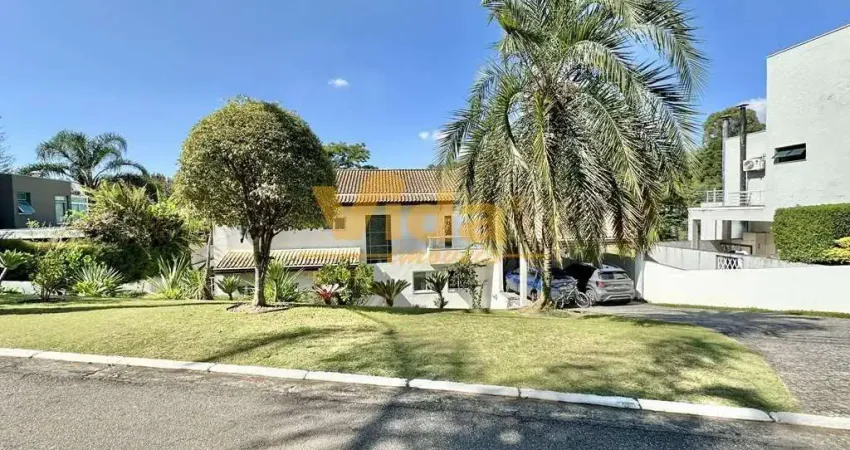 Casa ampla e completa com ótimo acabamento e boa acessibilidade. Jardim com paisagismo formado. Imóvel repleto de armários planejados. Portas e janelas em PVC e vidro, com telas na casa toda e venezianas nos quartos. Projeto de gesso e iluminação. Ar-condicionado em todos os quartos, salas e escritório. Sistemas Wi-Fi, Internet e TV à Cabo. Sistema de segurança com luzes de emergência. Pisos em porcelanato, revestimento de madeira e antiderrapante no quintal, com pedra Goias e Miracema. Louças e metais de qualidade. 3 acessos: Social, garagem, lazer/serviço. Hall de entrada social por uma porta pivotante de madeira. Lavabo decorado, com espelho e tampo em mármore. Suíte de hóspedes no térreo. Escada de alvenaria bem iluminada, revestida de madeira, com guarda corpo e corrimão de metal. Hall íntimo no piso superior com roupeiro. 5 dormitórios (sendo 4 suítes) com armários planejados e ar-condicionado Q e F, 4 com terraço. 1 das suítes no térreo ideal para hóspedes, com ótima acessibilidade. Banheiros com tampos em mármore, espelhos, gabinetes e box de vidro, sendo a master com 2 cubas e 2 duchas. Family room, ideal para home theater, repleto de armários planejados com gabinetes e estantes. Escritório com porta de correr, 3 posições de trabalho, repleto de armários, ar-condicionado, voltado para o lazer e natureza. Living para 5 ambientes, 2 ar-condicionados, voltado para varanda, anexo gourmet e piscina. Estar, bar, jantar integrado à cozinha (porta de correr), home theater integrado ao escritório (porta de correr). Cozinha planejada repleta de armários, ilha com balcão, bancada de granito em “U', 2 cubas inox, coifa inox, fogão 5 bocas Brastemp Ative, máquina de lavar, forno Brastemp Ative, geladeira Brastemp Ative e dispensa. Área de serviço aberta ensolarada e lavanderia fechada, integrada à cozinha, com tanque, quarto e banheiro de serviço. Varanda gourmet anexa ao living, com churrasqueira, forno de pizza, bancada de granito em “L' e pia inox. Piscina de alvenaria 9m x 5m, revestida em vinil, iluminada, aquecida por trocador de calor, ducha, solarium, casa de máquinas e vestiário. Garagem para 8 vagas, sendo 2 cobertas. Aquecimento central de água: Solar com suporte a gás de passagem. Preparado também para suporte elétrico. Abastecimento de água: Sabesp e captação de água de chuva. Armazenamento: 11 mil litros. 5 mil litros Sabesp com filtro de água no cavalete e 6 mil litros captação de água de chuva para uso externo. Esgoto: Fossa.