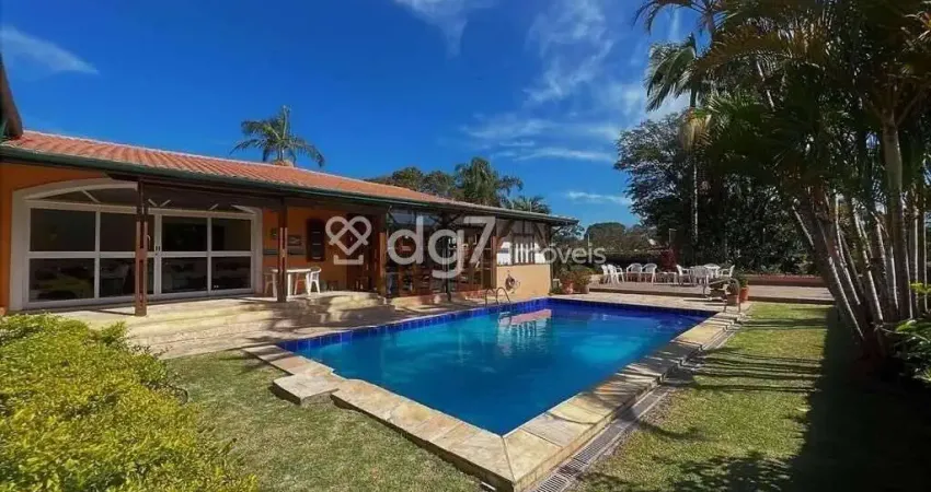 Localizada em um bolsão residencial fechado chamado Raio de Luz, esta casa térrea oferece espaços amplos e bem distribuídos!Possui um living para dois ambientes, sala de TV, sala de jantar e um grande hall social. Há também uma varanda encantadora de frente para a (link removido) salão espaçoso e envidraçado, anexo ao living, possui 125m² e é voltado para o jardim. Conta com uma área gourmet e lavabo, sendo perfeito para receber visitas. O escritório, com portas balcão, oferece uma bela vista para a varanda, piscina e (link removido) quartos são acessados por um corredor largo e iluminado naturalmente, com um guarda-roupa. A casa possui 5 dormitórios, incluindo 2 suítes, todos com armários. A suíte principal possui closet e portas balcão que se abrem para o jardim e piscina.A cozinha conta com armários planejados, além de uma copa e despensa. A propriedade possui uma piscina nova, solário e deck em porcelanato, proporcionando privacidade. Os jardins ao redor da casa são bem projetados, incluindo um orquidário.Há uma quadra poliesportiva em cimento, uma lavanderia com quintal ensolarado, dois quartos de empregada e um banheiro. Uma casa de caseiros completa, com dois dormitórios, sala, cozinha e banheiro, está anexa à propriedade. Um canil também está disponível.A garagem coberta pode acomodar até 6 veículos, além de duas vagas descobertas. O aquecimento de água é feito por uma caldeira de 400 litros, utilizando energia solar e elétrica. O abastecimento de água é proveniente de um poço em funcionamento e da Sabesp. A capacidade de armazenamento de água é de 12 mil litros.Não perca essa oportunidade, agende uma visita com a DG7 Imóveis!