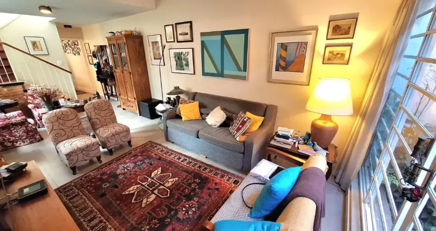 Ao chegar na casa entramos na garagem coberta para dois carros. A sala com janelão em serralheria mantem o charme originário da época da construção. A sala possuí dois ambientes com lavabo, potencial construtivo para integração ao corredor lateral. A sala de almoço é espaçosa e mantem as características do projeto original, também pode ser integrada a cozinha que é muito funcional e liga a área externa. Subindo as escadas chegamos nos três dormitórios espaçosos, arejados e iluminados, o corredor compartilha um banheiro social. A área de serviço é independente e fica nos fundos ao lado da Cozinha. A casa oferece mais duas suítes nos fundos independentes da casa principal uma com copa e a outra com generoso banheiro ideal para quarto de hospedes, escritório ou para locação pelo Booking e AirBnB ou locação tradicional de 30 meses.