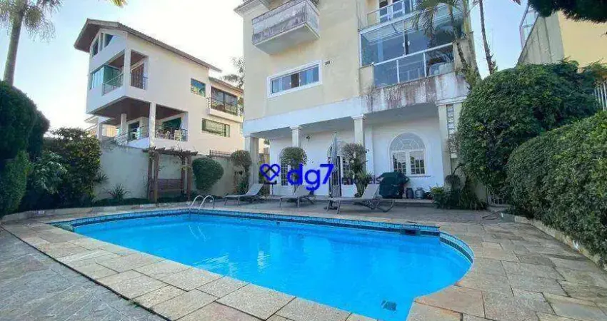 O imóvel conta com 524 m² de área útil e 457 m² de terreno, distribuídos em 5 suítes, sendo uma suíte master com closet, 7 banheiros, sala ampla para 4 ambientes com lareira, escritório, lavabo, cozinha planejada e espaçosa, salão de festas, sala de TV, piscina e quintal generoso, capacidade para 4 vagas na garagem, 2 quartos de apoio.