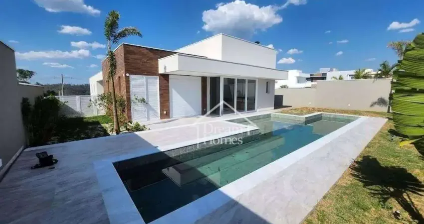 Casa com 396 m² de construção e 800 m² de terreno. Conceito moderno e clean, com posição privilegiada no condomínio. No dia a dia térreo (apenas uma suíte/ escritório e adega abaixo). Com 5 suítes (sendo 4 com piso em madeira Indusparket), sala de estar, sala de jantar, cozinha com ilha, área gourmet completa, home theater, lavabo, piscina com raia e hidro, banheiro para a área externa, lavanderia, pontos para fire place, infraestrutura pronta para aspiração central, automação, ar condicionado e aquecimento solar, persianas automatizadas, fechadura digital na porta principal, depósito, sótão e muitos outros detalhes. Tudo isso num condomínio com completa estrutura de lazer, segurança e monitoramento, com clube, pet place, quadras de tênis e muito mais. O Condomínio Campo de Toscana possui fácil acesso às área centrais e principais rodovias, serviços essenciais etc. Agende uma visita com nossos consultores!!