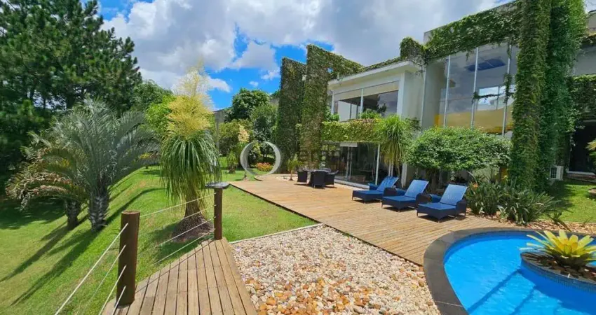 .Adega para mais de 300 garrafas. No piso intermediário, suíte master com varanda e janelas ao redor, closet Ornare com portas em couro, deck e jacuzzi. E, no piso superior, mais 2 suítes, uma sala íntima e um escritório com deck, sendo as 3 com persianas elétricas. No centro da casa, uma escada circular une todas as pontas. Sistema de alarme e câmeras, aquecimento solar e elétrico.