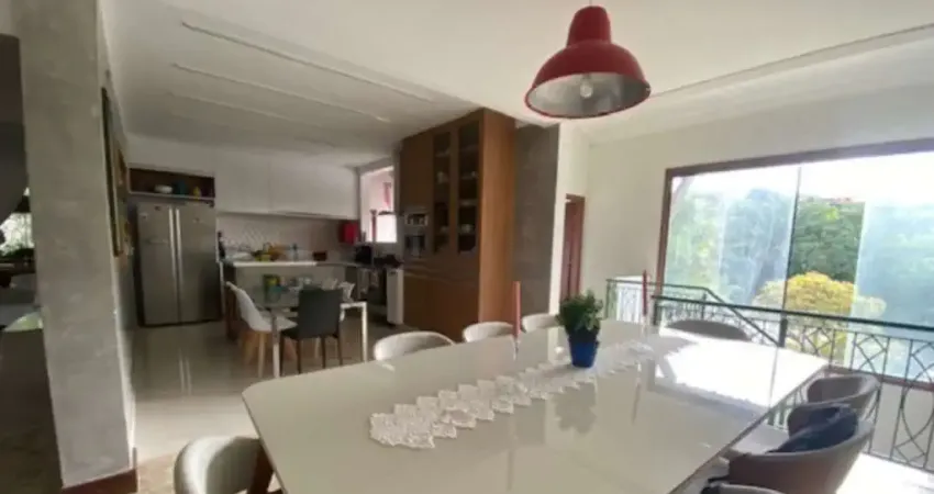 A residência reúne conforto e funcionalidade em ambientes amplos, incluindo varanda frontal, salas de estar e jantar, cozinha equipada, área de serviço, despensa, dependência completa e 6 suítes distribuídas entre térreo, subsolo e um charmoso bangalô da piscina.