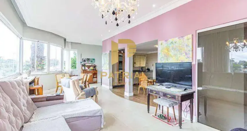 Da sala, tem-se uma vista espetacular, repleta de verde, cedros e araucárias.