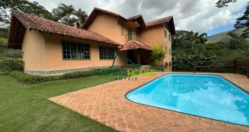 Um verdadeiro encanto! Localizada em uma das regiões mais desejadas de Itaipava, esta propriedade conta com terreno gramado e semi-plano de 2.100m² e construção de aprox. 310,00m². A casa contempla cômodos amplos, sendo distribuídos em sala de estar com lareira, sala jantar, salão com bar e varanda, cozinha e copa, 06 quartos - sendo 2 deles no primeiro andar e a suíte o maior deles com banheira e sacada; 02 amplos banheiros - sendo 1 em casa pavimento; piscina, salão, área de serviços, casa de caseiros, garagem coberta. Uma das maravilhas deste encantador imóvel é o privilégio do abastecimento de água através de poço, com vazão de até 25.000 litros/ dia. Possui localização privilegiada em uma das melhores e mais charmosa rua da região de Itaipava (não é condomínio), vizinhança nobre, sossego absoluto. Conta ainda com a facilidade de acesso via BR 040, estando a apenas 150m. da Estrada União e Indústria e a poucos minutos do centro comercial de Itaipava.