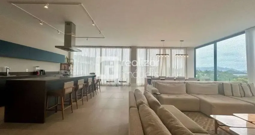 São 6 suítes, incluindo uma master com vista privilegiada, além de lavabo, duas cozinhas bem planejadas, duas áreas de serviço e espaço gourmet completo com churrasqueira. A área de lazer é um verdadeiro refúgio particular, com piscina aquecida, sauna e ambientes sociais integrados. No segundo andar, a ampla sala para até quatro ambientes garante uma vista panorâmica incrível da Baía Norte e da Ponte Hercílio Luz.