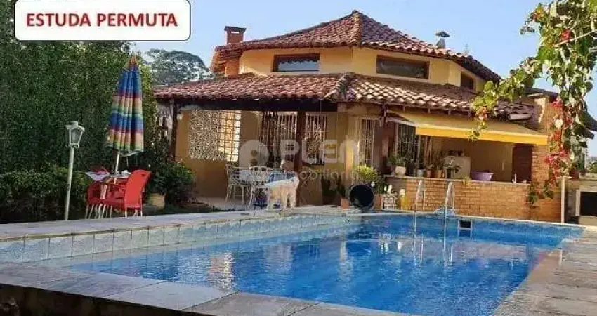 Parte de cima do sobrado são 3 suítes sendo 1 com closet, sala de estar com lareira, lavabo, sala de jantar, escritório, copa, cozinha, área de churrasqueira coberta, piscina com 40m2, gramado com belo espaço para lazer.