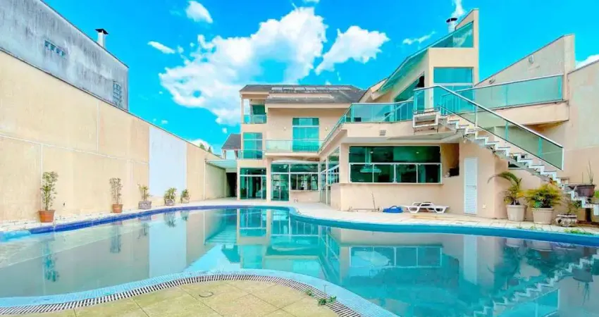 Com 720m² de área construída, conta com ambientes integrados, sala de estar, cozinha planejada, espaço gourmet completo e piscina com cascata. No pavimento superior, são 5 suítes com sacada, além de uma suíte máster com hidromassagem e amplo closet.