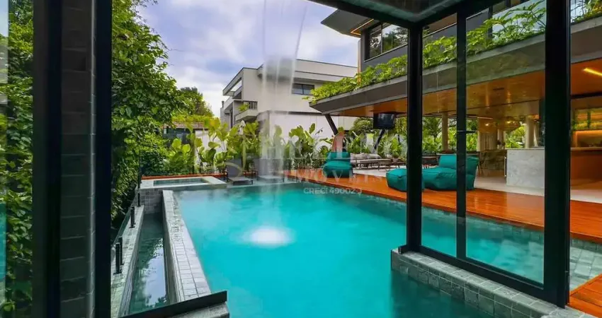 Inspirada na arquitetura biofílica de Singapura, a Casa Aurora apresenta um conceito único que harmoniza linhas contemporâneas, pedras naturais e curvas orgânicas, criando uma integração absoluta entre os ambientes internos e a paisagem externa.