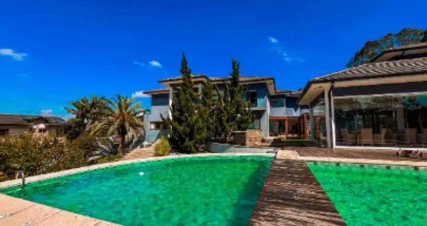 O imóvel é uma residência de alto padrão com 7 suítes, sendo uma suíte com closet no pavimento térreo e seis suítes avarandadas no pavimento superior, incluindo uma master com hidromassagem e sala íntima. Todos os ambientes do andar superior possuem ar-condicionado inverter quente/frio, e portas e janelas com sistema anti-ruído. Conta com elevador, hall de acesso com guarda-sapato, roupas e mini adega, além de salas amplas distribuídas em três ambientes distintos, sala de TV, escritório e lavabo. A cozinha é ampla, com planejados e ilha central com coifa, e a lavanderia possui planejados e acesso independente. O imóvel ainda oferece sótão com planejados, academia privativa, sauna úmida com vestiário, salão de jogos completo com cozinha e banheiro, área gourmet com bancada e armários, churrasqueira, forno de pizza, freezer e geladeira, piscina aquecida com borda infinita, gazebo com rede, lago com carpas e ponte de madeira, orquidário, canil, espaço gramado para pets, galinheiro e pomar. O sistema de segurança inclui câmeras internas e externas, e a residência conta com quarto e banheiro para prestador de serviço, além de garagem coberta para seis carros e duas salas adicionais que podem ser utilizadas como despensa ou espaço para bicicletas.