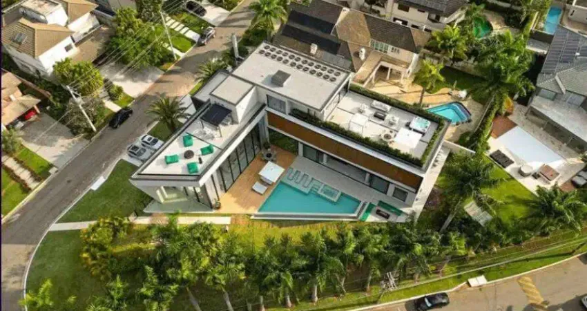 Mansão espetacular e única, localizada em uma esquina, na área mais nobre do condomínio, cujo projeto conceituado e moderno oferece uma vista espetacular do seu Roo top de 485,78m2, contendo um bar totalmente equipado e completo para seu momento de lazer, além de um SPA para 8 pessoas, com cromoterapia, TV e Som integrados, fogo de chão, com vários ambientes de puro relaxamento e lazer, proporcionando uma vista espetacular e uma privacidade única em todos os momentos do seu dia.