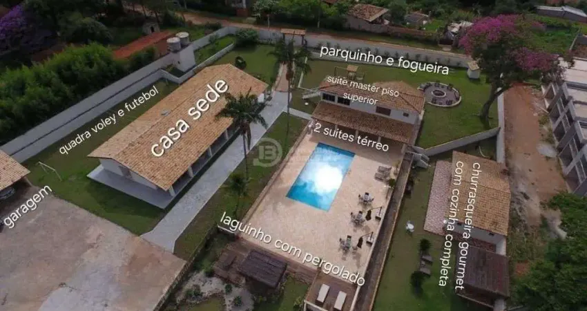Terreno de 4.000m2 e 850m2 de construcao; sendo casa sede avarandada com 4 dormitorios, 2 suites (uma master de 90m2 com