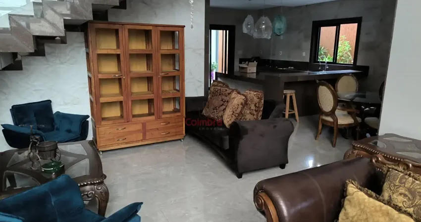 Casa com 3 suítes, sala ampla com pé direito de 6m, cozinha com armários, área de serviço, despensa interna, 2 varandas e garagem para 2 carros.