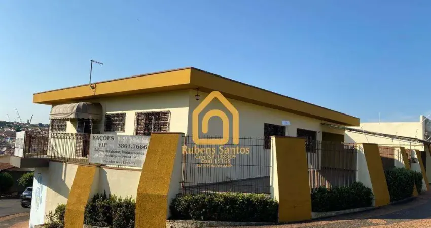 Quintal com laje e vista linda para a cidade, dois salões comerciais, um espaço para depósito e terreno.