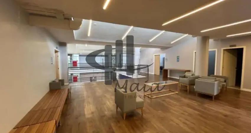 Ar-condicionado, recepção, 5 escritórios, 2 vestiários, 4 banheiros, mezanino, elevador e 28 vagas