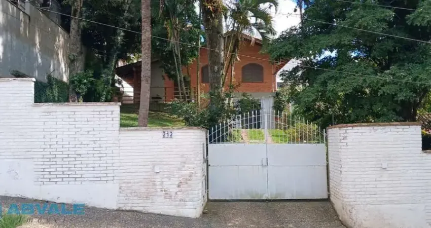 CASA DE ALVENARIA - BAIRRO VILA NOVA, com 2 pavimentos, situada nas imediações da Escola Elza Pacheco (Colégio Victor Hering), contendo uma suíte, dois dormitórios, banheiro social, sala ampla com 3 ambientes, cozinha com armários, área de serviço, dispensa, quarto de empregada com banheiro, área de escritório com 3 ambientes, área de churrasqueira, toda murada, amplo terreno ajardinado.