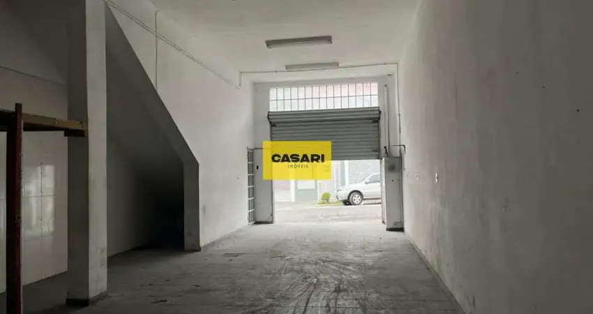 Sobrado comercial para locação com salão de 76 m² no piso térreo, pé direito alto, banheiro e espaço nos fundos, oferecendo versatilidade para diferentes tipos de comércio.