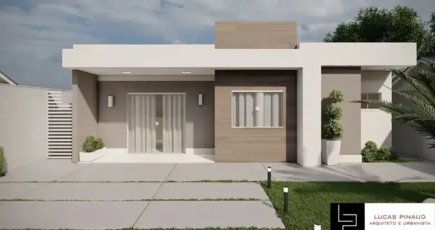 Casa vai ter 77 m² de área construída, podendo ampliar, pois o terreno tem 315 m², rua pavimentada, condomínio fechado com extraordinária área de lazer e segurança total.