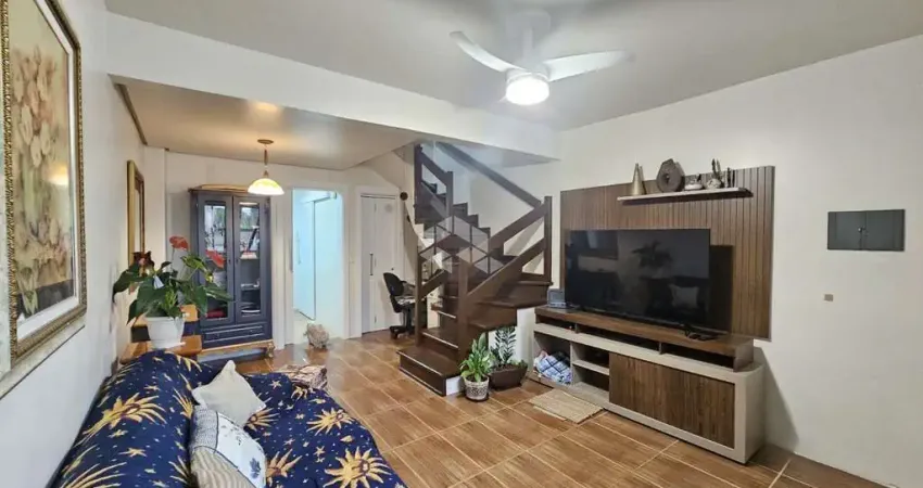 Sobrado 2 dormitórios semimobiliado em condomínio fechado, com vaga e pátio privativo, na Rua Pistóia 820, Canoas. No nível térreo: Sala estar ampla com ar condicionado e ventilador de teto, separada da sala de jantar, cozinha ampla com móveis, depósito e lavanderia funcional externa, 01 lavabo. No piso superior 2 dormitórios, sendo o de casal muito amplo com móveis de gramado, ar condicionado e ventilador de teto, já o dormitório de solteiro conta com ventilador d teto e roupeiro. Ficam no imóvel: Dormitório casal: Ar condicionado, ventilador de teto cama e roupeiro de gramado; Dormitório de Solteiro: Ventilador de teto e roupeiro; Sala Ventilador de teto e ar condicionado; Cozinha: Armários e mesa; Banheiros e lavabo: os móveis. Ficam ainda as luminárias. Aberturas das janelas em PVC branco, o que proporciona uma ótima durabilidade, acústica e isolamento térmico.
