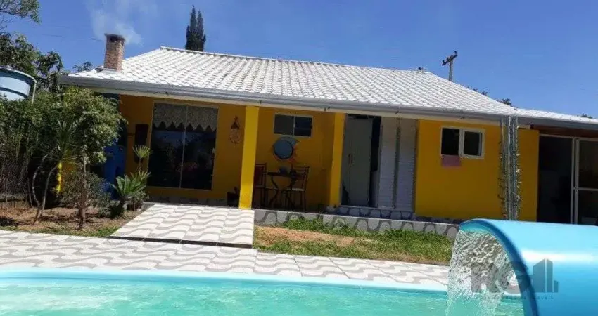 Excelente casa térrea no Condomínio Cantegril em Viamão, há 10min. de Porto Alegre. Em terreno de 416,4m2(12m×34,7m), construção sólida e privativa de 180m2 com pé direito alto . Além de contar com portas de alumínio brancas com vidros temperados de correr em todas as peças para integração com a natureza e muito arejada. Dispõe de sala e cozinha integrada, 2 quartos sendo 1 suíte, 1 escritório, 1 banheiro social e outra sala, podendo ser transformada em outro quarto. Além de área de serviço e área de churrasqueira integrada a piscina de 6m. Garagem para 2 carros, sendo 1 coberta. Pátio amplo com frutíferas , excelente posição solar e localização privilegiada no Condomínio Cantegril. Ficam todos os móveis planejados.