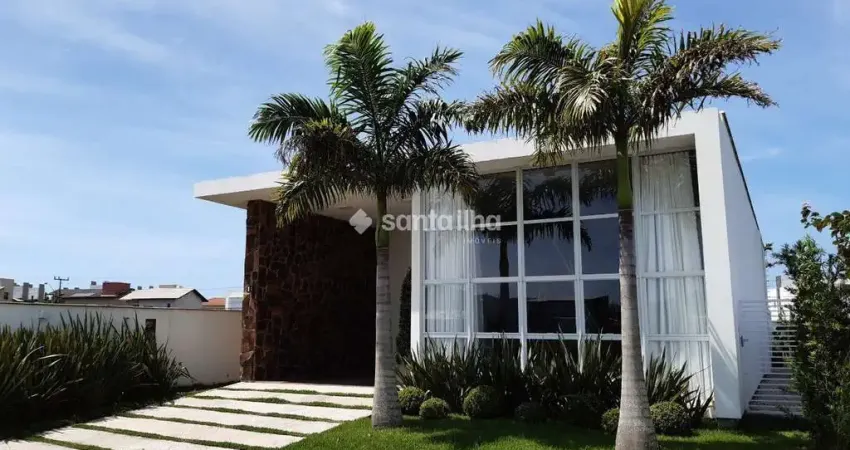 A casa conta com 223 m² de área construída e está localizada dentro de um belo condomínio fechado, proporcionando segurança e tranquilidade para a família. O projeto é ímpar, com uma integração total entre ambientes com um pé direito de mais de 4 metros.