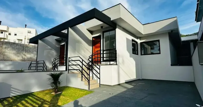 Casa nova geminada 2 quartos em Caminho Novo, Palhoça. Casa 02 com 59m² de área total e 100m² de terreno, casa 03 com 68m² de área total e 130m² de terreno(com corredor lateral). O imóvel possui 50m² de área privativa, 2 dormitórios, 1 banheiro e 1 vaga de garagem. Acabamento em porcelanato em toda residência, proporcionando modernidade e facilidade na limpeza.