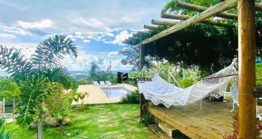 A casa estilo chácara tem uma vista belíssima e te chama para o descanso. Uma bela piscina, pomar e uma casa extremamente charmosa te convidam para um refúgio de paz.