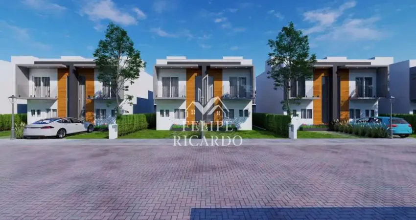 Sobrados modernos com 82 m² de área construída.