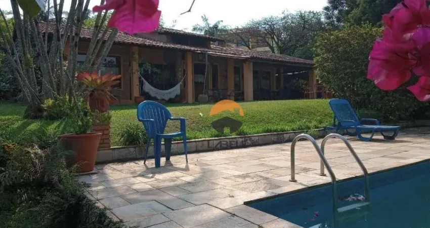 Casa em padrão rustico com duas suítes em terreno de 1600 m2 no condomínio Nova Higienópolis, com acesso pelo km 28 da Rodovia Raposo Tavares, com sala para três ambientes, varanda, escritório piscina, vagas para 8 carros.