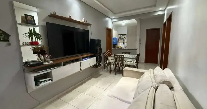 Casa de 62m² com 02 dormitórios, sala dois ambientes, cozinha, área de serviço, 01 banheiro social, 01 lavabo, 01 vaga de garagem e amplo quintal com churrasqueira.