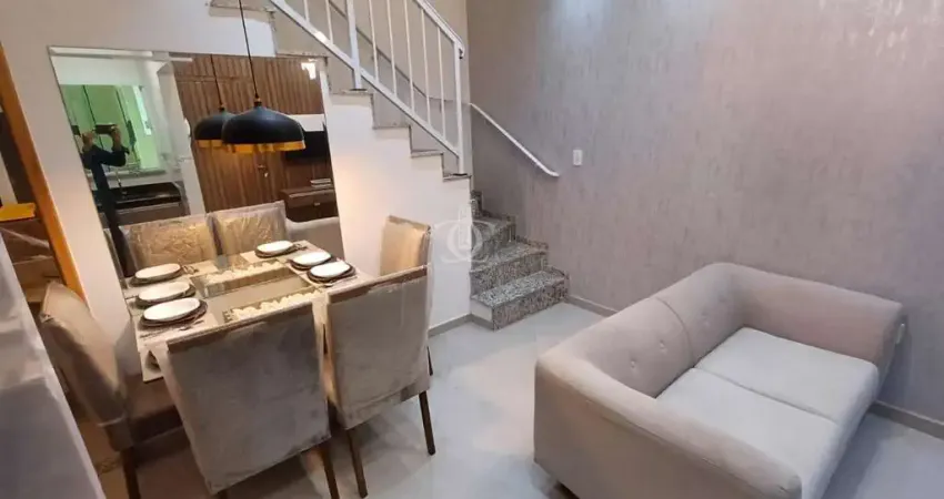 Sobrado N° 05 - Possui 120m², 2 suítes sendo 1 com sacada, sala 2 ambientes, cozinha, lavabo, lavanderia, quintal, cobertura e 1 vaga de garagem coberta. Imóvel entregue todo mobiliado, possui porcelanato em todos os cômodos. Cobertura com churrasqueira, banheiro e fechamento em vidro.