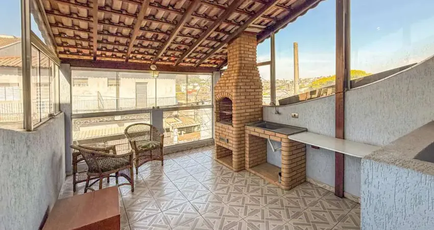 Sobrado com 2 dormitórios, 1 vaga, sala de estar, lavabo, varanda com churraqueira, cozinha com armários, 2 banheiros, quintal.