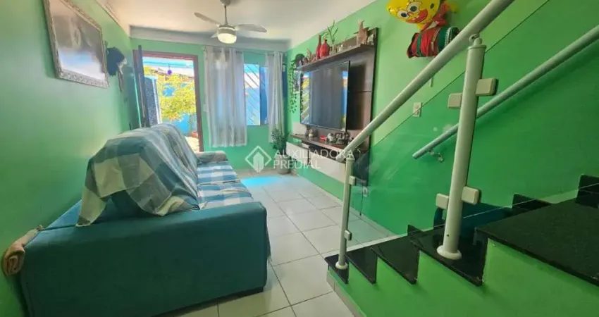 Sobrado geminado em condomínio fechado com ambiente familiar, uma vaga fixa, interfone e entrada social.