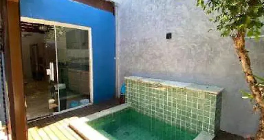 Um ambiente aconchegante disposto numa incrível área gourmet integrada a sala e ao deck externo da casa com uma pequena piscina refrescante em pedras naturais. Lindo revestimento.