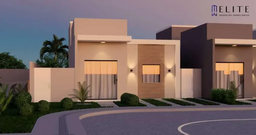 A UNIDADE: Casas com sala de estar e jantar, 3 quartos, sendo 1 suíte, cozinha e área de serviço, garagem para até 2 carros e com um quintal amplo de até 55m².