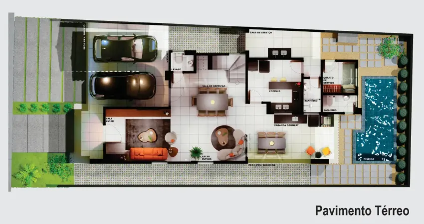 Pavimento Superior: 3 suítes • Estar íntimo amplo • Varanda